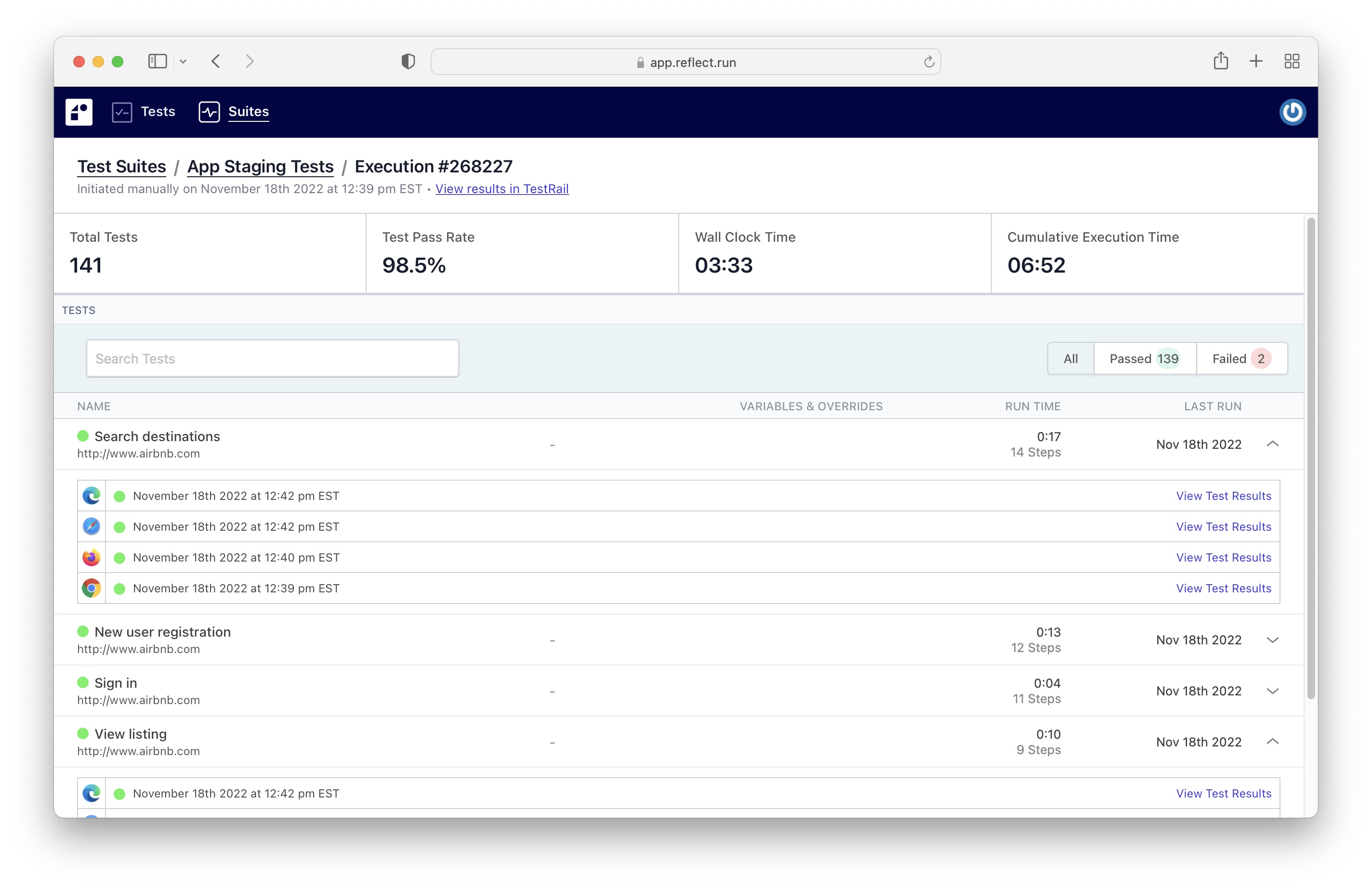 With Reflect's no-code test builder, you can build tests that can instantly run across multiple browsers.