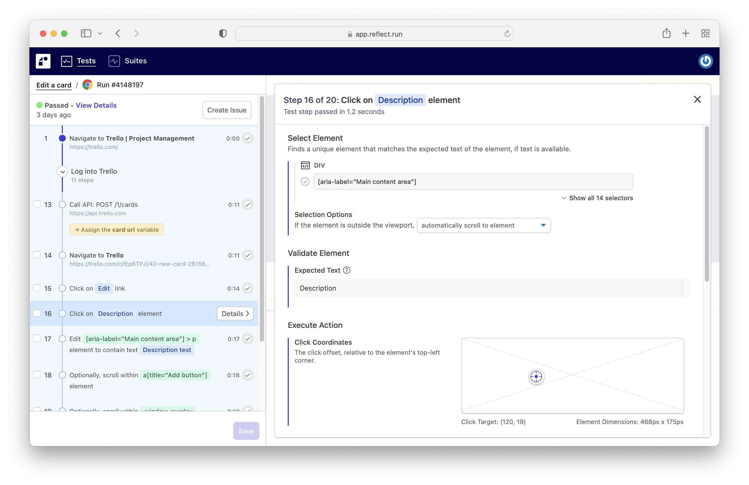 Reflect's cloud browser records your actions and automatically converts them into a repeatable test.